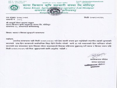 ऋण रकम तथा व्याज बुझाउने ३५ दिने अत्यन्त जरुरी सुचना